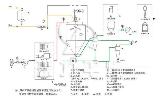 產(chǎn)品描述:噴霧干燥是液體工藝成形和干燥工業(yè)中應(yīng)用廣泛的工藝。適用于從溶液、乳液、懸浮液和糊狀液體原料中生成粉狀、顆粒狀固體產(chǎn)品。因此,當(dāng)成品的顆粒大小分布、殘留水份含量、堆積密度和顆粒形狀必須符合精確的標(biāo)準(zhǔn)時(shí),噴霧干燥是好的工藝。