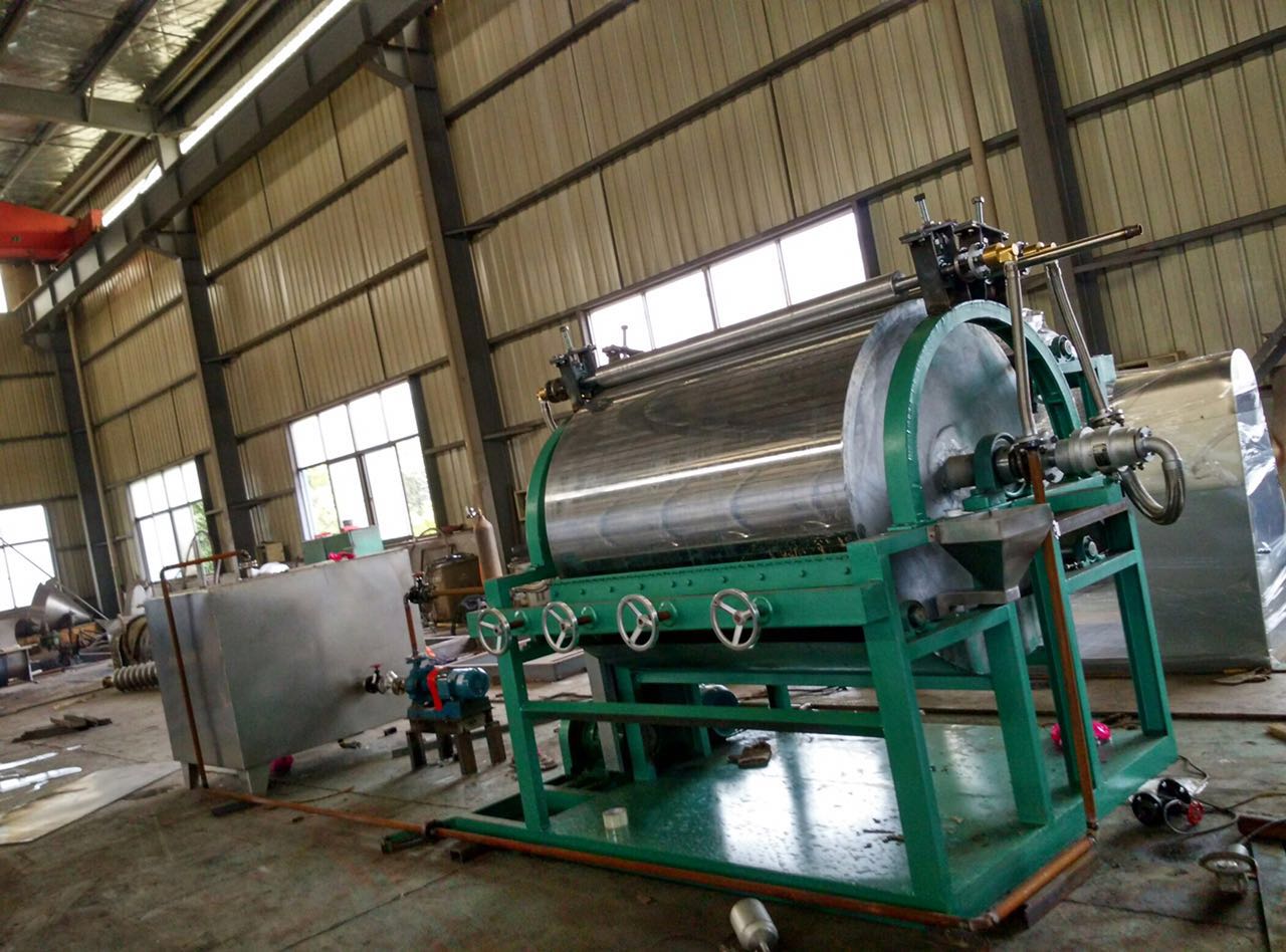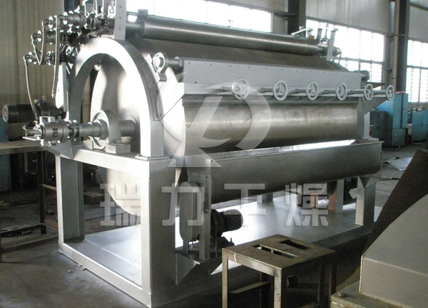 3、干燥時間短。物料的干燥周期一般只有10-300秒,在適合于熱敏性物料。若將滾筒干燥機設(shè)置在真空器中,則可在減壓條件下運行。