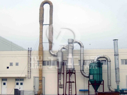 顆粒和熱氣流的流動(dòng)方式:在筒體下部既有對(duì)流也有并流,對(duì)粗料更是對(duì)流和并流反復(fù)換熱。對(duì)于細(xì)粒物料則是隨熱氣流同程并行,因而干燥過(guò)程可以瞬間完成。對(duì)于顆粒的干燥實(shí)際上是采用高溫低濕的熱空氣干燥。這些顆粒主要是由水分吸附、充填于顆??障堕g,采用高溫低濕的條件,整個(gè)顆粒的熱傳導(dǎo)緩慢,造成局部應(yīng)力集中而干裂、破碎、分散、加速干燥過(guò)程。