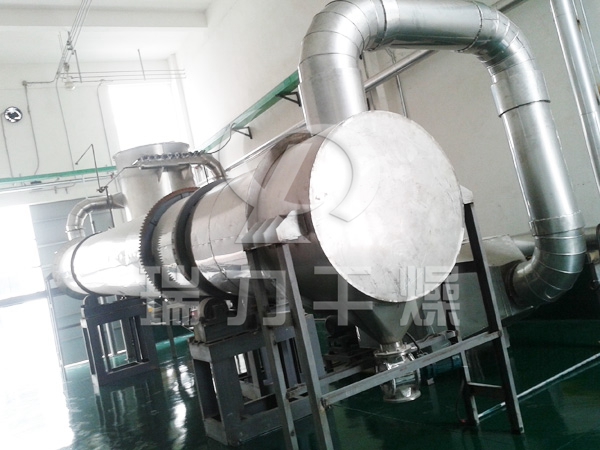 案例描述:物料從干燥機一端投入后,在內(nèi)筒均布的抄板器翻動下,物料在干燥器內(nèi)均勻分布與分散,且與并流( 逆流 )的熱空氣充分接觸 ,加快了干燥傳流、傳質(zhì)推動力。在干燥過程中,物料在帶有傾斜的抄板和熱氣流作用下,可調(diào)控地運動至干燥機另一端星形卸料閥排出成品。