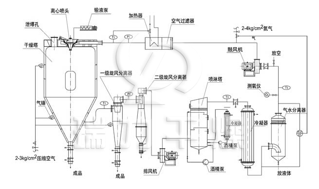 三、設(shè)備特點(diǎn):本公司離心噴霧干燥機(jī)解決了減水劑干燥存在的問題: 1、物料粘壁;2、顏色變黃;3、氣掃失效;4、成品料回潮。